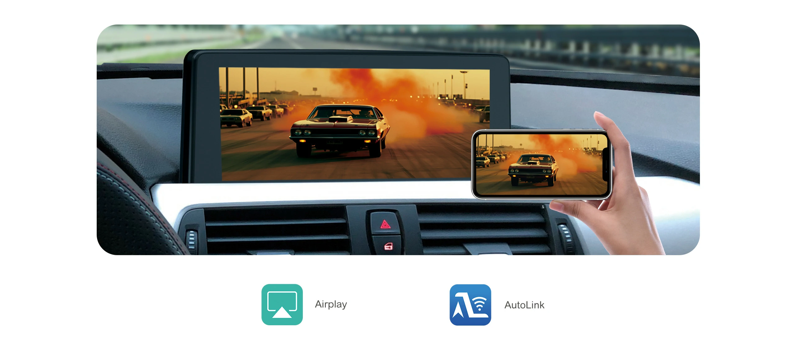 Just simply connect the Android screen to your phone, you can use navigation, make calls, send and receive messages, enjoy music, etc.,in a smarter, safer and more interesting way to use your iPhone/ Android devices.You can control it through the touchscreen, iDrive knob or smart voice assistant.